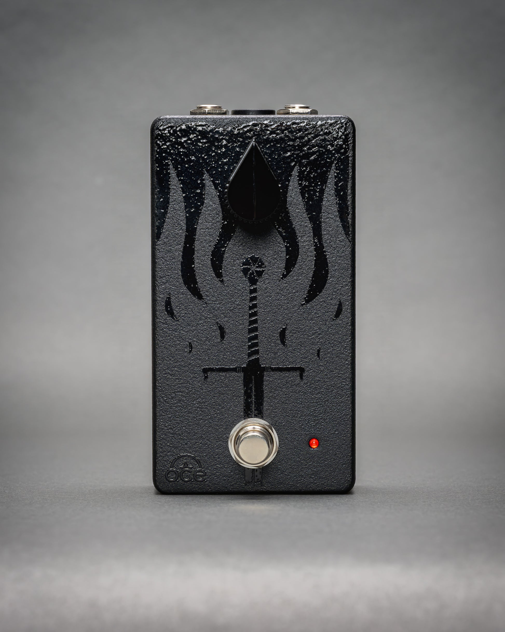 The circuit is a mod of the fuzz from the Grey Pilgrim and White Rider, now with LED clipping. It is louder and more open, ready to conquer any amp that lay before it.